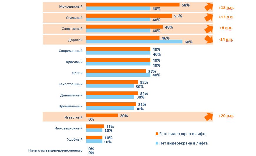 Исследование WKS и агентства Vision подтверждает, что indoor-реклама на видеоэкранах в лифтах может работать как самостоятельный канал, положительно влияя на ключевые имиджевые характеристики. Даже без широкой медийной поддержки компания получила рост знания, повысила заинтересованность аудитории и изменила восприятие: аудитория начала считать бренд стильным и молодежным.