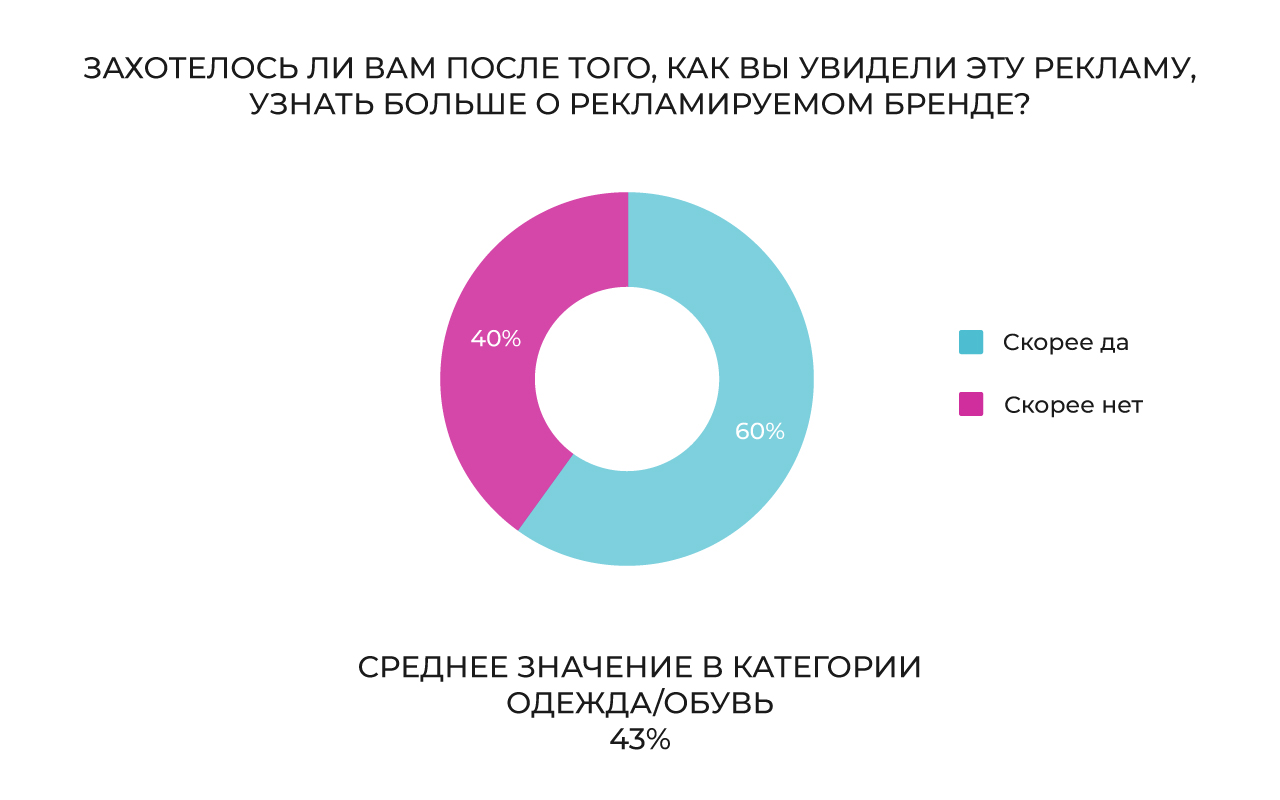 У 60% видевших реклама вызвала желание узнать больше о рекламируемом бренде.